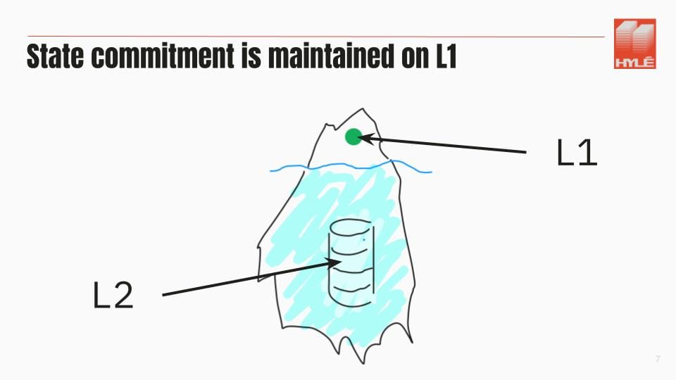So, in short, a rollup is an iceberg: a tiny bit is visible on Layer 1, the state commitment, and the whole database on Layer 2.