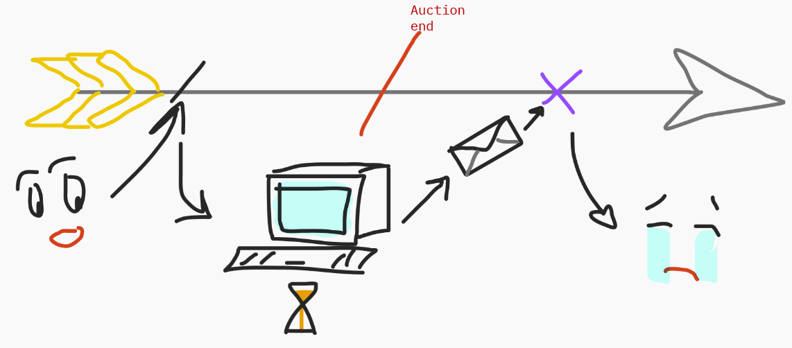 Let's take another, slightly more realistic example: you have an auction. The auction ends at the red bar on the timeline below.